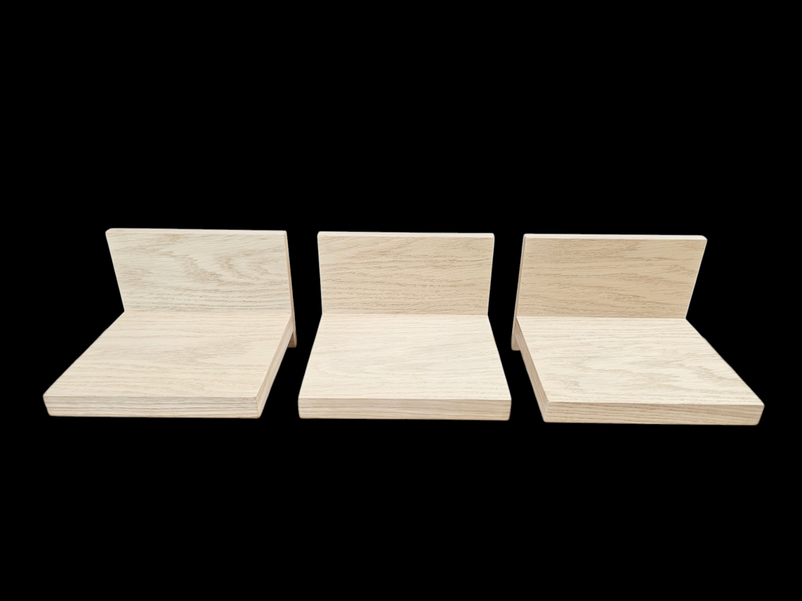 Praktický set troch dubových minipolíc, navrhnutý na jednoduché uchytenie priamo do akustickej lamelovej steny – bez potreby vŕtania. Ideálne pre drobné kvety, rastliny, sošky a dekorácie.