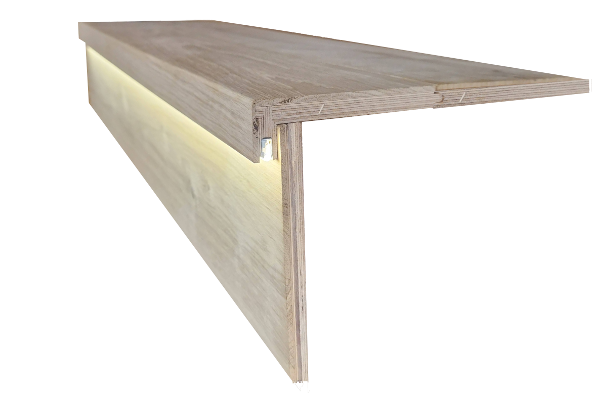 Drevený obklad schodov pre betónové schodisko s led svetlom