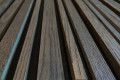 The natural oak on the surface provides endless possibilities for wooden lamella design in its shade and texture