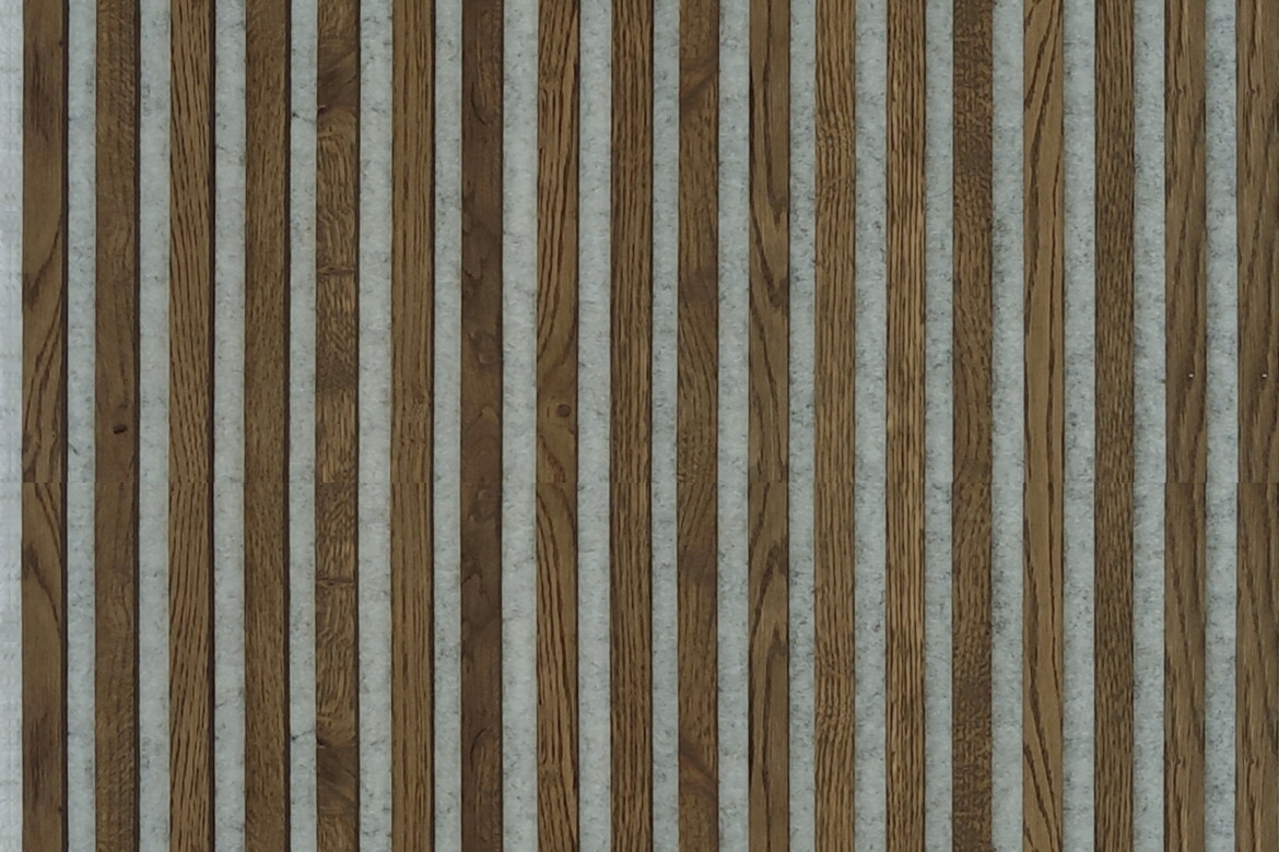 We create the basic collection by combining 10 shades of oak, 3 types of wooden slats and 2 shades of acoustic PET felt.