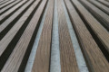 The natural oak on the surface provides endless possibilities for wooden lamella design in its shade and texture