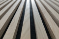 The natural oak on the surface provides endless possibilities for wooden lamella design in its shade and texture