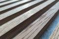 The natural oak on the surface provides endless possibilities for wooden lamella design in its shade and texture